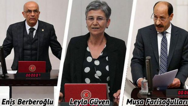 TBMM Genel Kurulu’nda, ikisi HDP’li; Leyla Güven, Musa Farisoğulları ve CHP’li Enis Berberoğlu olmak üzere üç milletvekilinin vekilliği düşürüldü.