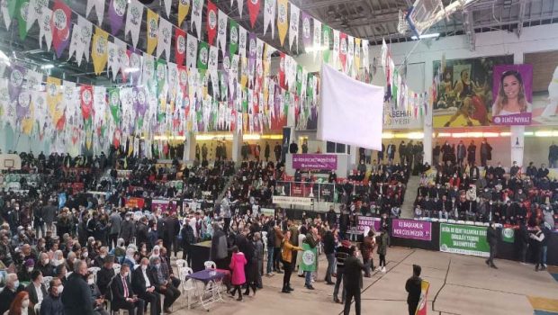 ETHA’da da yer alan habere göre, Halkların Demokratik Partisi İzmir İl Örgütü’nün 4. Olağan Kongresi Konak’ta bulunan İzmir Enternasyonal Fuarı Celal Atik Spor Salonu’nda başladı. “Umut ve cesaretle faşizme karşı örgütleniyor özgürlüğe yürüyoruz” şiarıyla gerçekleştirilen kongreye Ege Bölgesi’nden yüzlerce kişi katıldı.