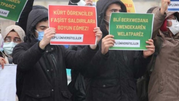 Üniversite öğrencileri, Akdeniz Üniversitesi’nde Kürt öğrencilere dönük ırkçı saldırıyı protesto ederek, “Faşist saldırılar yurtsever öğrencilere boyun eğdiremez!” dedi.