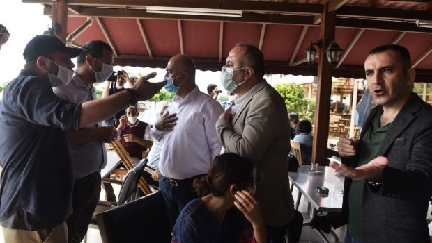 Daha sonra polis, alana gelerek yürüyüş öncesi bir kafede bekleyen HDP’li vekiller ve beraberindeki siyasetçilere kimlik kontrolü yapmak istedi ancak vekiller izin vermedi.
