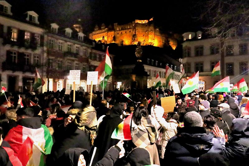 Heidelberg Kornmarkt Meydanı’nda saat 19.30’da başlayan mitinge, Kürdistan’ın dört parçasından çok sayıda kişi katıldı.
