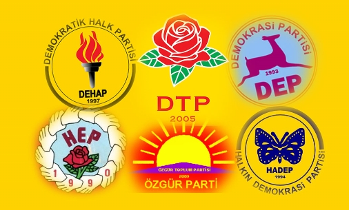 Kürt halkının siyasi ortamda haklarını savunmak için 1990’ların başında binbir emekle açtıkları partiler hep kısa ömürlü oldu. Bu siyasi hareketin 1990’da Halkın Emek Partisi’yle (HEP) başlayan, Özgürlük ve Demokrasi Partisi (ÖZDEP), Demokrasi Partisi (DEP), Halkın Demokrasi Partisi (HADEP), Demokratik Halk Partisi (DEHAP), Özgür Parti’den Demokratik Toplum Partisi (DTP)’ye uzanan yedi partili zorlu mücadelesinin tarihçesinden bazı kronolojik derlemeler: