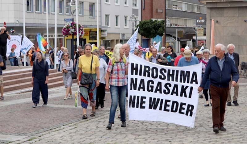 Hiroşima ve Nagazaki anmaları bu yıl daha farklı bir yoğunlaşmayla gerçekleştiriliyor. “Avrupa’da cereyan edecek bir nükleer savaş tehlikesi artık çok somut” gerçekliğiyle, Eylül ayı sonuna dek Almanya çapında yüzü aşkın anma-etkinlik gerçekleştirilmiş olacak. Avrupa çapında gerçekleştirilen tüm etkinliklerdeki raporlar yeniden yetkili mercilere aktarılacak.