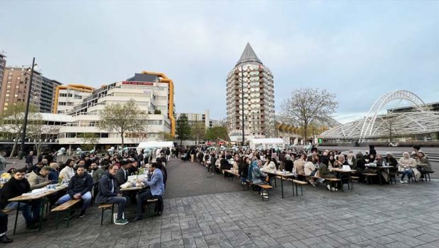 Hollanda’nın Rotterdam kentinde, sokak iftarında ülkenin çeşitli bölgelerinden gelen üniversiteli gençler birlikte oruç açtı.