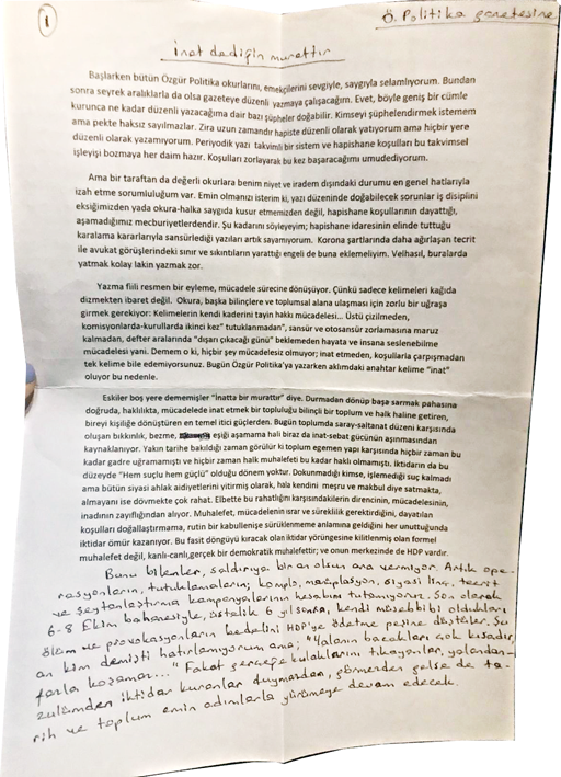 Figen Yüksekdağ – Yeni Özgür Politika – 22.10.2020