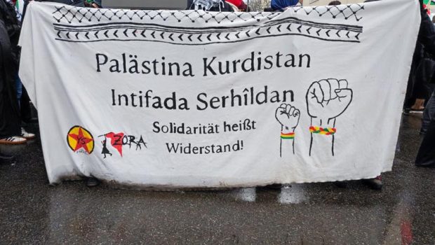 Ayrıca, Avrupa’dan Filistin ve Kürdistan’ın özgürlüğünü ve devrimini savunma çağrısı yapılırken, aynı zamanda Filistin’le dayanışma hareketine karşı giderek artan baskılara karşı mücadele edilmesi gerektiği vurgulandı.