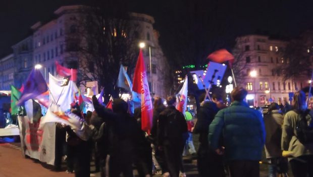 Young Struggle (YS) ve Komünist İnşa (KA) örgütlerinin çağrısıyla Berlin’in Kreuzberg semtinde önce bir miting düzenlendi.