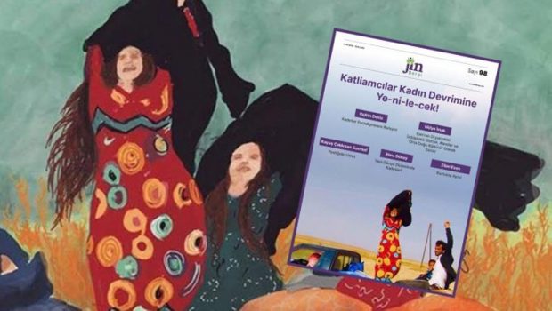 Jin derginin 98’inci sayısı “Katliamcılar Kadın Devrimine Ye-ni-le-cek” kapağıyla yayımlandı.