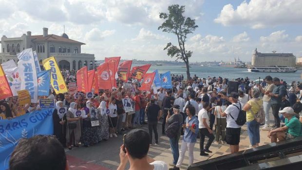 İstanbul Emek Barış ve Demokrasi Güçleri’nin çağrısıyla toplanan yüzlerce kişi hep bir ağızdan barış için haykırarak iktidara savaş politikalarından vazgeçmesi çağrısında bulundu.