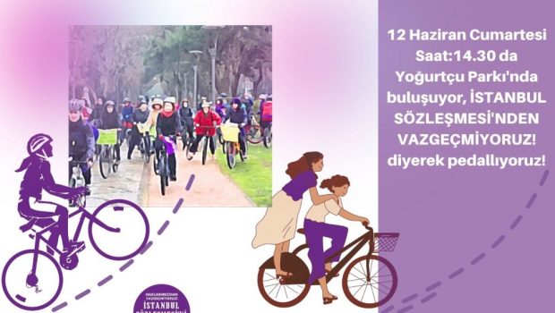 İstanbul Sözleşmesi’ni Uygula Kampanya Grubu 12 Haziran Cumartesi günü saat 14.30’da Yoğurtçu Parkı’nda İstanbul Sözleşmesi için bisiklet eylemi yapmaya çağırıyor.