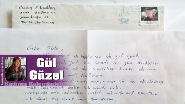 Almanya ve diğer Avrupa ülkelerindeki Cezaevlerinden yazılan ve Cezaevlerine yazılan mektupların tercüme, sansür edilmeden tutsak/mahkumlara verilmediği bizce de bilinen bir durum ama mahkum alan siyasi bir tutsağın kendi dilinde değil de Almanca yazmak zorunda bırakılması ilk rastladığım bir tutum. Onun için yazdığı mektubu Almanca yazmak zorunda bırakılan sayın Öcalan’ın Almanca yazılmış mektup haline hiç değmeden ve en sonunda da türkçe çevirisini siz okuyucularımızla paylaşıyorum. Kürt ve Kürt dili halen suçludur, teröristtir, yok edilmelidir! Diyenleri de bu vesileyle şiddetle kınıyorum!!!