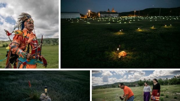 Kanada’nın Saskatchewan eyaletindeki Marieval Yatılı Kilise Okuluna ait bölgede 24 Haziran günü ortaya çıkarılan ve resmi kayıtlarda olmayan mezarlarda kemikleri bulunan 751 çocuk için, Cowessess First Nation Konseyi tarafından anma töreni düzenlendi.