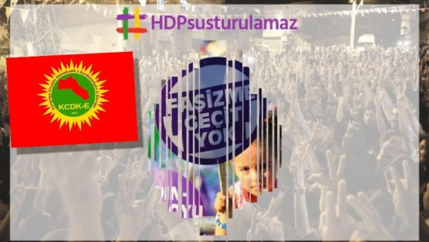 HDP şahsında herkesin iradesinin ipotek altına alınmak istendiği, bu yüzden herkesin faşizme karşı sesini yükseltmek için HDP’yi sahiplenmesi gerektiği kaydedilen KCDK-E açıklamasında, şu çağrı yapıldı: “HDP tüm özgürlük eşitlik isteyenlerin sesi ve partisi olduğu için saldırılara uğramaktadır. Kurdistan ve Türkiye’deki tüm muhalifler, Erdoğan mağdurları, inançlarından, tercihlerinden veya siyasi görüşleri ve yaşam biçimlerinden ötürü baskı atındadırlar. Tüm bu kesimler ve faşizme karşı demokrasiyi savunlar, işçi kıyımına, emek sömürüsüne karşı sendika ve grev hakkı diyenler, siyasal İslam’ın baskıcı zihniyetine karşı mücadele eden Alevi, Êzîdi, Hristiyan, demokrat, Müslüman ve inançlarını özgürce yaşamak isteyenler, iktidarcı-erkek egemenlikçi anlayışa karşı kadın özgürlüğünü savunanlar, doğa ve tarihi yıkıma karşı mücadele eden ekoloji hareketleri, AKP-MHP tekçi-ırkçı zihniyetine karşı ben Kürdüm, Asuri, Ermeni, Laz, Çerkes kimliğimle özgür ve eşit yasam istiyorum diyen herkes bilmelidir ki HDP şahsında hepimizin iradesi ipotek altına alınmak istenmektedir. HDP’yi sahiplenmek, bu nedenle özgürlüğü ve demokrasiyi sahiplenmektir.Bu yüzden oyunu HDP’ye veren, vermeyen herkes faşizme karşı demokrasinin sesini yükseltmek için HDP’yi sahiplenmelidir.