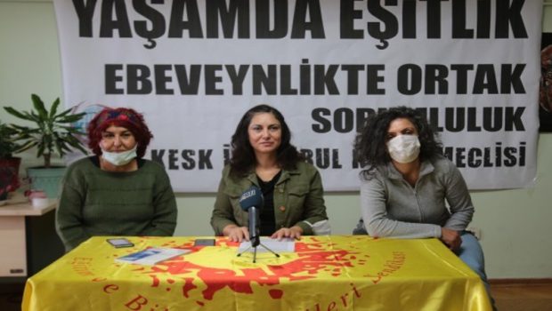 Kamu Emekçileri Sendikaları Konfederasyonu (KESK) İstanbul Kadın Meclisi, İstanbul Valiliğinin “10 yaşından küçük çocuğu olan kadınların idari izinli sayılıp evden çalışabilecekleri” yönünde yayınladığı genelgeye tepki gösterdi.