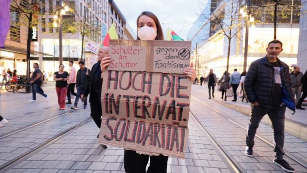 Eylemde Die Linke Milletvekili Gökay Akbulut ‘MLPD temsilcisi, Yeni Kadın Mannheim Örgütü ve ATİK temsilcileri birer konuşma yaparak saldırılar kınandı.