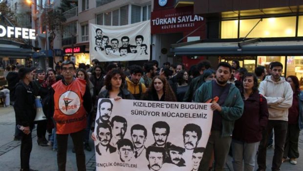 İzmir’deki gençlik örgütleri, 30 Mart 1972’de Tokat’ın Kızıldere köyünde katledilen Mahir Çayan ve 9 arkadaşını andı. Türkan Saylan Kültür Merkezi önünde yapılan anmada “Kızıldere’den bugüne sürüyor mücadelemiz” pankartı ve katledilen 10 kişinin fotoğrafları taşındı. Açıklamada sık sık “İsyan, devrim, özgürlük”, “Onlara sözümüz devrim olacak” sloganları atıldı.