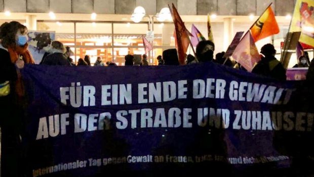 Pandemiye rağmen Köln Dom Kilisesi önünde buluşan kadınlar ve lgbti+’lar, coşkulu bir 25 Kasım eylemi gerçekleştirdi.