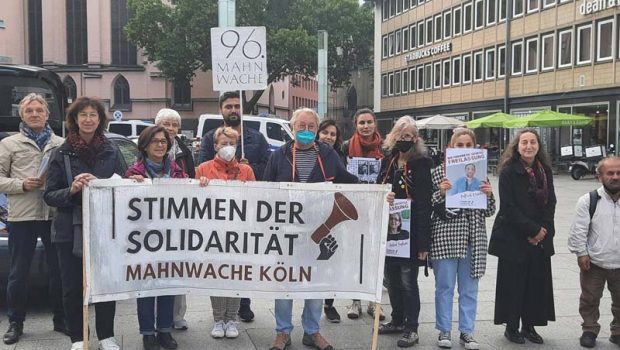 Köln’de tutsak gazeteciler ve siyasi tutsak Alman vatandaşları ile dayanışma çalışması yürüten Dayanışmanın Sesi Derneği, 96. Adalet Nöbeti eylemini düzenledi.