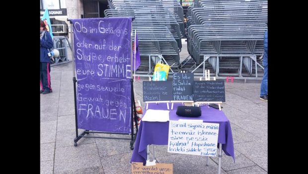 20-21 Aralık’ta Paris’te düzenlenen Politik Tutsaklarla Uluslararası Dayanışma Konferansı’nda, ZORA temsilcisi Anna Liedtke’nin ifşa ettiği cinsel işkence ve tecavüzü, Siyonist İsrail’in sistematik olarak uyguladığı cinsel şiddet ve baskıları protesto etmek amacıyla, SKB’nin çağrısıyla Köln Hauptbahnhof Platz’da bir info standı açıldı. Almanca konuşmanın yapıldığı, bildirilerin dağıtıldığı eylemde, halka yaşanan insanlık dışı durum teşhir edildi.