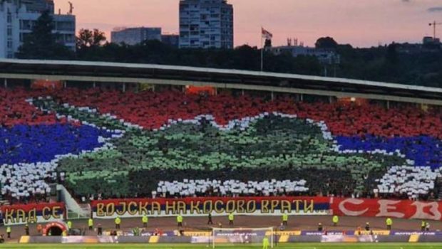Sırbistan temsilcisi Kızılyıldız taraftar grubu “Delije” tarafından düzenlenen koreografi içinde yer alan tank grafiği ve “Ordu Kosova’ya döndüğünde” gibi ırkçılık içerikli mesajlar, Kosova tarafından tepkiyle karşılandı.