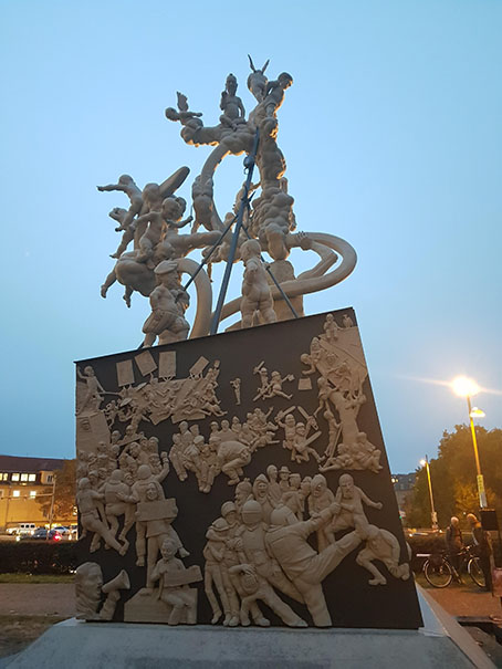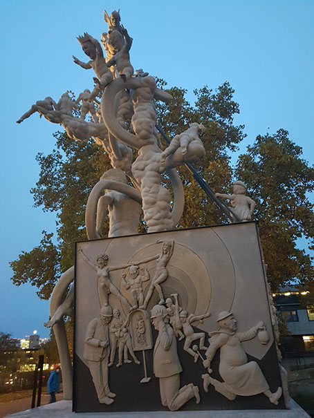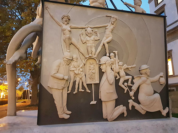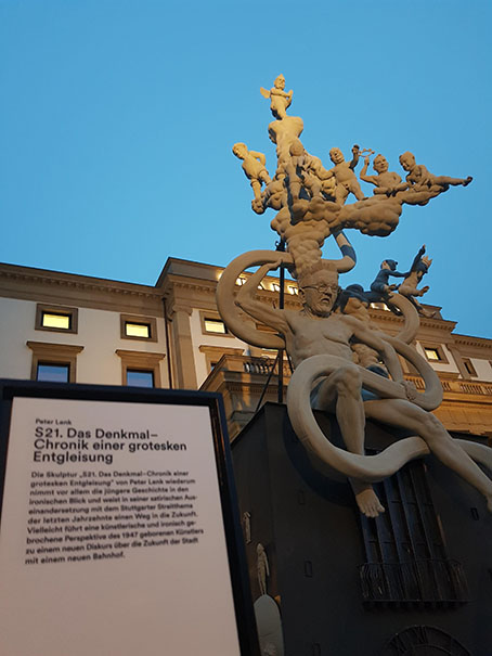 Heykeltraş Peter Lenk’in yaptığı haykel, Stuttgart’ta senelerdir çokça protesto edilen S21 projesini satirik bir yorumla anlatıyor. Heykelin ana merkezli ve yüzlerce figürün en büyüğü Baden Württemberg eyalet parlamento başkanı Winfried Kretschmann’a ait. Eser 9 metre yüksekliğinde ve 10 ton ağırlığında olup, bütününde 150’den fazla figür işlenmiş.