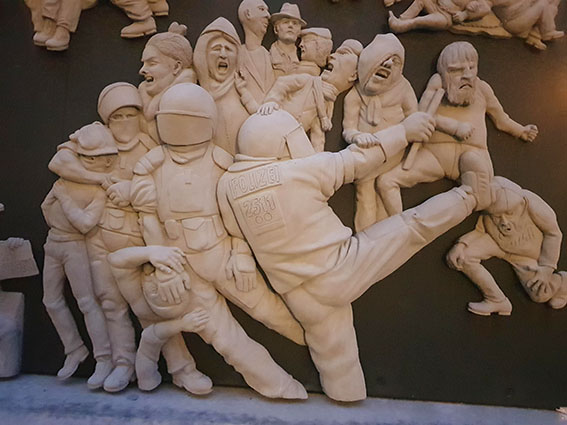 S21 protestolarında yer alıp, 30 Eylül 2014’de ‘Siyah Perşembe günü’ olarak bilinen protestoda polis şiddetine maruz kalan eylemciler, yaralıları taşıyanlar, Hristiyanlar da S21’i istemiyor! diyen figürler ve benzerleri de yer alıyor. Bütün bu figürleri sanatçı, Satirik- Sanat diliyle eleştirisel bir şekilde sergiliyor.