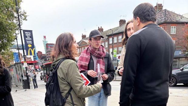 İngiltere’nin başkenti Londra’da Sosyalist Kadınlar Birliği (SKB) aktivistleri, göçmen nüfusun yoğun olarak yaşadığı Wood Green bölgesinde bir stand kurarak faşizme karşı kampanya broşürü dağıtımı gerçekleştirdi.