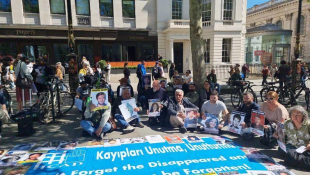 Londra Trafalgar Square’de düzenlenen protestoda, gözaltında kaybedilenlerin akıbetinin açıklanması ve sorumluların yargılanması talebi bir kez daha dile getirildi.