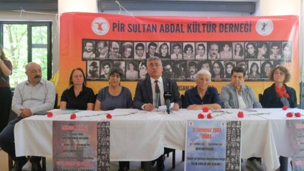 Pir Sultan Kültür Derneği (PSAKD), 33 aydının yaşamını yitirdiği Madımak Katliamı’nın yıldönümünde yapacakları anmaya dair Mülkiyeliler Birliği’nde basın toplantısı düzenledi. Dernek üyeleriyle birlikte yapılan toplantıda açıklama yapan PSAKD Genel Başkanı Cuma Erçe, “Emekten, laiklikten, Eşitlikten yana olan, özgür ve kardeşçe yaşayacağımız aydınlık Türkiye diyen, halkına ses, karanlığa ışık olan tüm dostlarımızı 2 Temmuz’da Sivas’a ve bulundukları her yerde alanlara çağırıyoruz. Faşist ve şeriatçı kuşatmaya karşı birlikte mücadeleye çağırıyoruz. Unutmadık, unutmayacağız, unutturmayacağız” dedi.