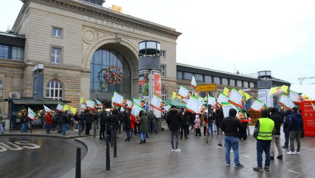 Merkez Tren Garı önünde düzenlenen eylemde yapılan konuşmalarda Kürt Halk Önderi Abdullah Öcalan özgürlüğüne kavuşana kadar Kürtlerin alanlarda olacağı belirtildi.