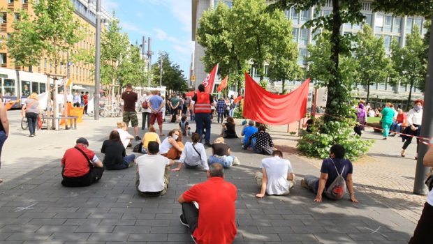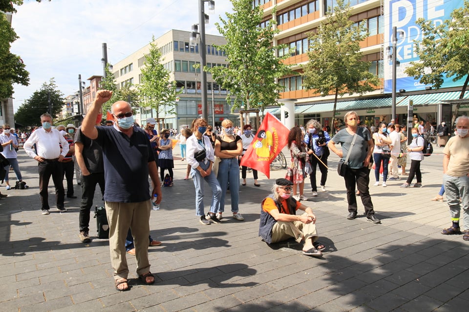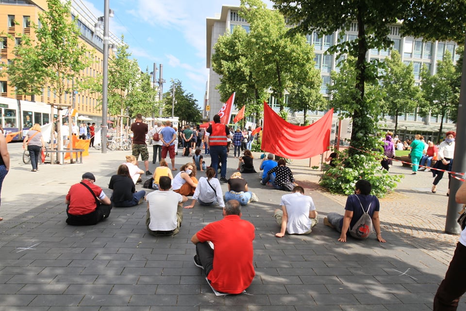 Almanya genelinde aynı saate her yerde “Bölünmeyiz” mitingi yapıldı. Aktion Bundis’in çağrısıyla , bir araya gelen demokratik kuruluş ve mücadeleci sendikacılar kapitalizmin yarattığı krize emekçilerin kurban edilmemeyeceği ve Krizin Faturasını ödemeyeceğiz denilerek, mesafe kurallarına dikkat ederek maskeli eylem yaptılar. Ve kapitalizmde yaratılan krizlerin emekçileri bölemeyeceği söylendi.
