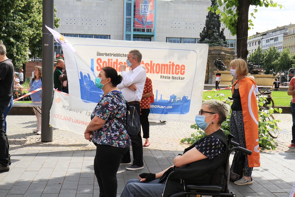 Aktion Bundnis,çağrısıyla oluşturulan “Bölünmeyeceğiz” platformunda Attaç-Mannheim,DGB-Jugend Nord Baden, DİDF-Mannheim-DİDF- Jugend Mannheim,İSO-Rhein-Neckar ve Migranttinen-Rhein Neckar-Verein-Rhein Neckar oluşturduğu eylem grubu , sık dayanışma çağrıları yaparken, kaitalizmin yarattığı krizin faturasını işçiler ve emekçilerin ödeyemeyeceğini söylediler.