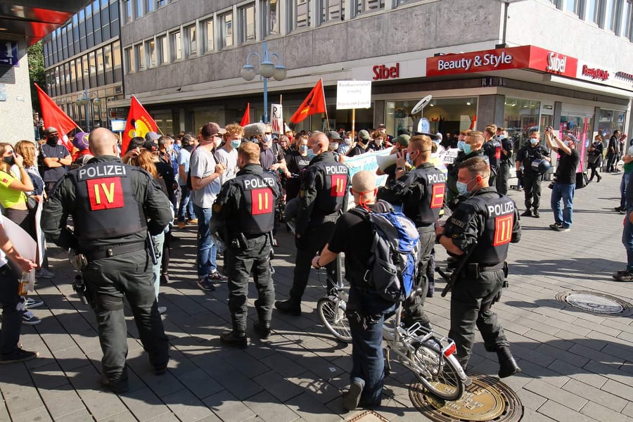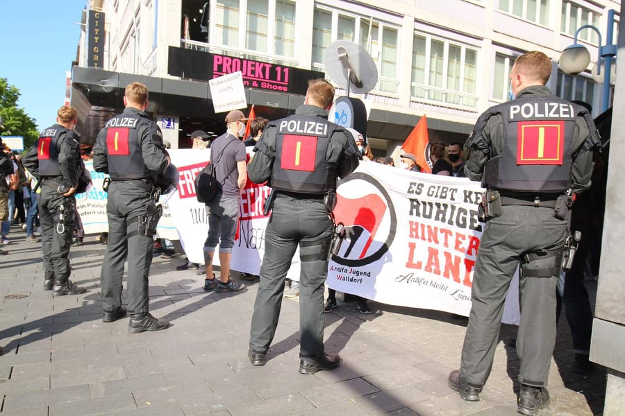 Hiç bir şekilde hijyen kuralları ve mesafeye uymayan maskesiz grup, dün Mannheim Marktplatz Meydanı’nda grup antifaşist grupların protestosu ile karşılaştı. Mitingin başlayacağı saate doğru toplanan yaklaşık 250 kişilik grup hijyen kuralları maske ve mesafe kurallarına uymadan saatlerce eylem yaptı. Polisin yoğun önlem aldığı mitinge daha sonra Mannheim Abendakademie önünde toplanan Antifaşist Gruplar ve demokratik kurum ve siyasi parti temsilcileri ırkçı grupların miting yaptığı alana doğru yürüyüşe geçti Markplatz önünde polis barikatıyla engellene anti faşist gruplar ve demokratik kurum temsilcilerinin konuşmalarını devam ettirdi sırada, Markplatz Meydanı’na miting alanına pankartlarıyla giren antifaşist bir grup polisin engellemesiyle durduruldu.Karşıt sağcı gruptların yer yer karşı sloganlar ve provokatif hareketler yaptığı anlarda oluşan gerginlik kısa sürede engellendi.