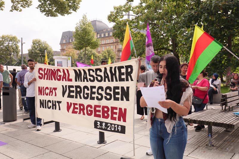 Naw Dem LU/MA’nın (Kürt Kültür Merkezi) çağrısıyla Mannheim Wasserturm’da yapılan anma mitinginde, Unutmak Yok! Affetmek Yok! Sloganları atılırken, Şengal’e statü ve kendi kaderini tayin etme hakkının tanınması istendi. Ezidiler için kendi kaderini tayin etme güvenli geleceğin garantisidir denildi.