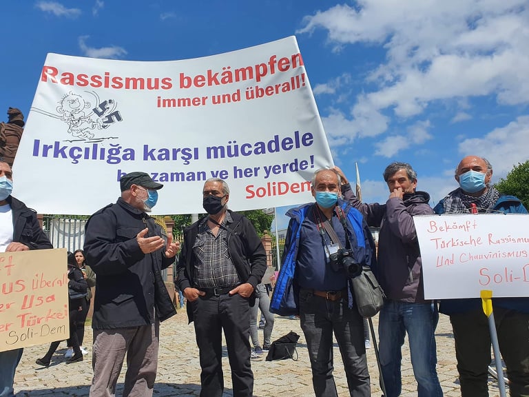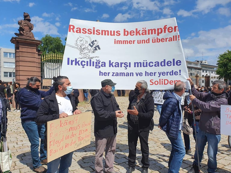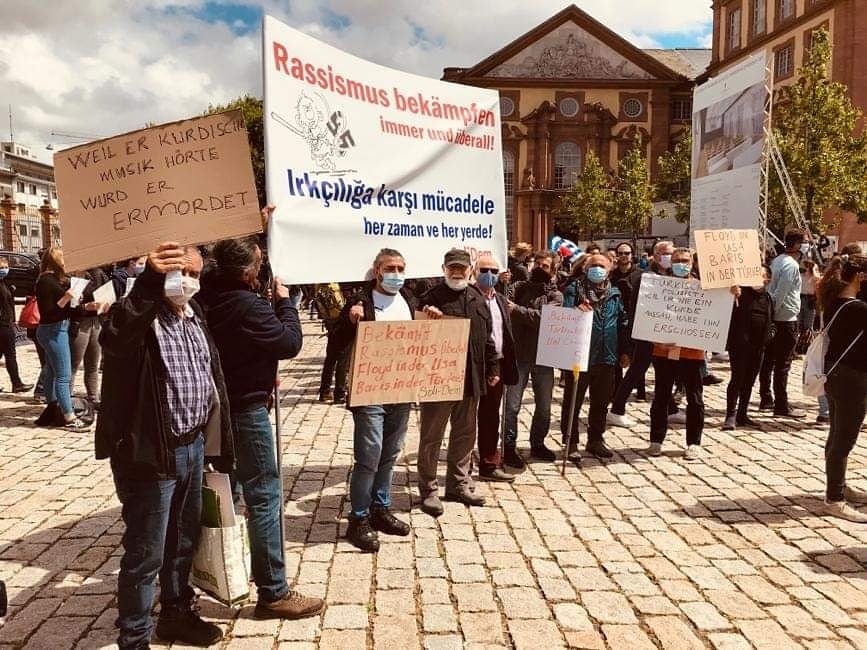 Türkiyeli Göçmen örgütleri ve grupların da katıldığı eyleme ATİF, AGİF, ADHK, NAW-DEM ve Mannheim Halk Cephesi bayrak ve flamalarıyla katılırken, SOLİ-DEM “Irkçılağa Karşı Her Zaman Her Yerde” ve “Irkçılık Her Yerde Ameika’da Floyd, Türkiye’de Barış” sloganlarının olduğu pankart ve dövizler ilgi çekti…Mitingde DIDF-Jugend imzali bildirilere de rastlanıldı.