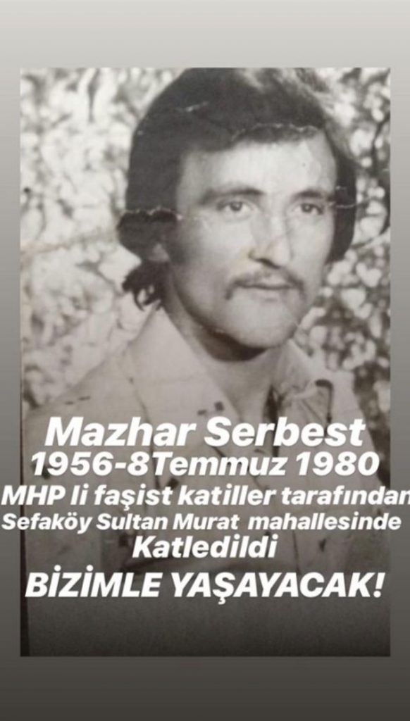 Faşizme karşı anti-faşist mücadele, sadece örgütlerin ve onların kadro ve militanlarının direnişiyle sınırlı değildi. Direniş fabrika, tarla, ev ve mahallerde kitlesel düzeyde idi… Mazhar Serbest 8 Temmuz 1980’de MHP’li faşistler tarafından katledildi.