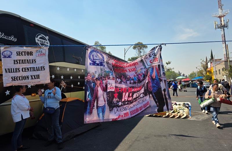Konferans için Meksika’ya giden TSP heyeti, Meksika Ulusal Eğitim Çalışanları Sendikası’nın (SNTE) Meksiko City’de örgütlediği 48 saatlik grevine dayanışma ziyaretinde bulundu. Meksika’nın tüm bölgelerinden başkente gelen ve bakanlık binası önündeki caddeleri işgal ederek kamp kuran eğitim emekçileri, emeklilik yaşının yükseltilmesine ve haklarını kısıtlayacak olan bir yasa tasarısına karşı mücadele etmekteler.