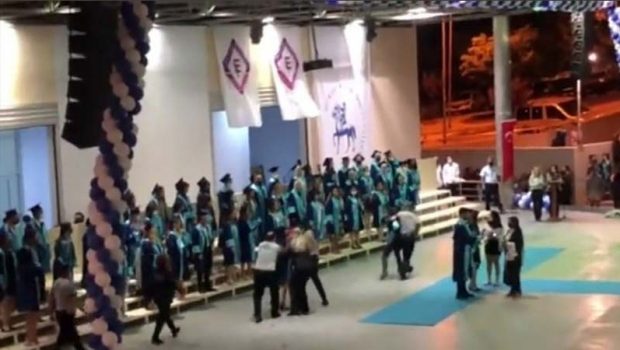 Mezuniyet töreninde İstanbul Sözleşmesi maskesi takan öğrencilere saldırı