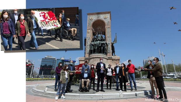 Önce Kazancı Yokuşu’na giderek 1 Mayıs 1977’de katledilen emekçileri anan İstanbul milletvekilleri daha sonra Taksim Cumhuriyet Anıtı’na giderek DİSK’in polis tarafından parçalanan 1 Mayıs çelenginden arta kalanları anıta bıraktı.