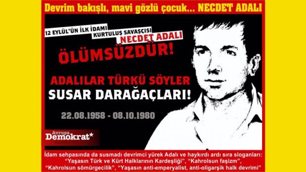 12 Eylül’ün ilk idamı Kurtuluş Savaşçısı Necdet Adalı Ölümsüzdür!