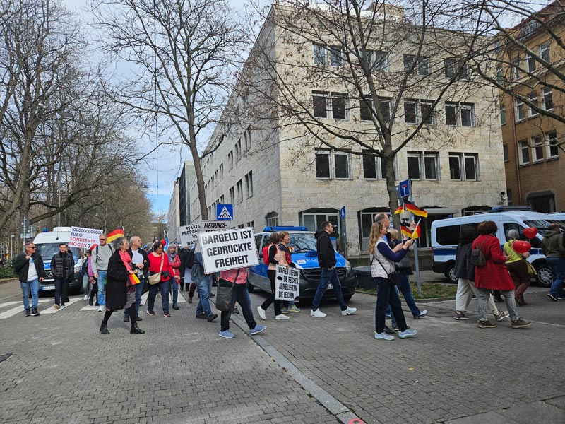Solcu grup ise, Stuttgart Renklidir!, Faşistlere geçit yok!, Nerede, ne zaman olursa olsun Nazilere karşı mücadele!’, Yoksulluk ve Faşime karşı mücadele!, Dayanışmalı bir toplum için Sağcılara karşı belirli sınırlar!, İnsanlık Onuru dokunulmazdır! Pankatlarını açıp, taşıdılar. Her iki grubun izinli yürüyüş ve mitinginde taşınan pankart ve dövüzler okunduğundan, hangi grup, neyi savunuyor? Sorusunu biz gazeteciler birbirimize sormak zorunda kaldık. Ancak polis-güvenlik güçlerinin tavrı belliydi ve Solcu gruptaki aktivistlere yaklaşımı hem onur kırıcı hem de şiddetin ayyuku durumundaydı.