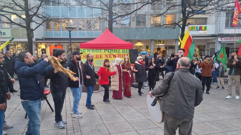 Eylemde sürekli en çok “Newroz Piroz be”, “Serak Apo”, “Terörist Erdoğan”ın yanı sıra Kürt halkıyla dayanışma sloganları atıldı.