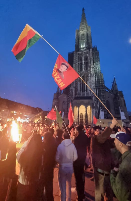 Ulm’da Avrupa Demokratik Güç Birliği (ADGB) Bileşenlerinden ADHF, ATİF, AGİF, FED-GEL tarafından çağrısı yapılan ve Çağrı, İnternational Bündis, MLPD, Rebell gibi kurumların desteklediği bir miting gerçekleştirildi. 200 kişinin katıldığı Newroz mitingi şehrin en büyük meydanı olan ve kentin merkezinde bulunan Münsterplatz meydanında yapılırken, yakılan Newroz ateşi coşkuyu daha da artırdı.