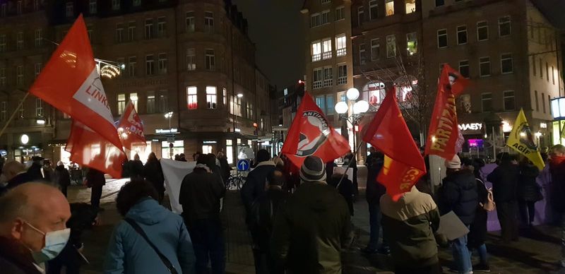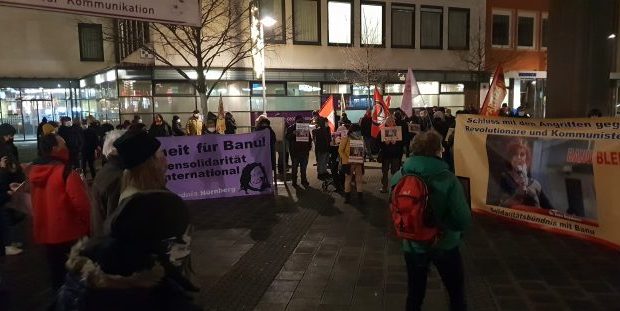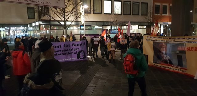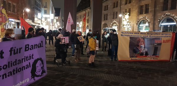 “Banu ile Dayanışma Platformu”nun çağrısına; Korona önlemleri, havanın soğukluğu, Belediyece verilen miting izninin geç saat oluşu ve erken kararan kış saatlerinde caddelerin karanlık oluşu gibi hiç bir etmen Nürnberg`li devrimci, demokrat, yurtsever, ilerici, komünist, sendikacı, göçmen, sürgün, Alevi, Kürt, Türk, Azeri, İranlı, Eritreli, Vietnam`li Alman, Otonom, antifaşist, Kadın örgütleri, Sendika, Belediye çalışanı, Doktor, Avukat, yazar, gazeteci, işçi ve emekçi kesimlerden oluşan ve hemen tüm kesimlerin katılarak destek ve dayanışmasına engel olamadı ve Nürnberg- Hallplatz anlamlı bir buluşmaya tanıklık etti.