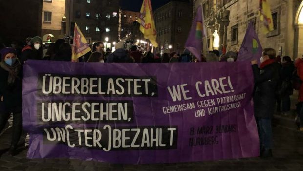 8 Mart Dünya Emekçi Kadınlar günü Almanya’nın Nürnberg kentinin Hauptmark Meydanında mitingle başladı, Dünyada ve Rojava’da kadın mücadelesinde öne çıkan isimlerden Clara Zetkin, Rosa Luxemburg, Sakine Cansız ve Ivana Hoffmann’ın  isimleri okundu ve kısa yaşamları anlatılarak saygı duruşuyla anıldı.