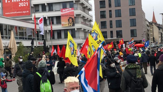 Savaşlara son verilmesi, silah ticaretinin yasaklanması talepleriyle yapılan yürüyüş Kopernikusplatz’da başladı. Nürnberg çarşı merkezinde sona erdi.