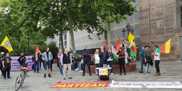 TKP/ML davası mahkemesinin başlamasının 4. yılı ve Nisan 2015 uluslararası emperyalist operasyonunu teşhir etmek için bugün Atina, Viyana, İnnsbruck, Brüksel ve Zürich`te ” Devrimci Mücadele Meşrudur, Yargılanamaz !” şiarıyla yapılan sokak etkinliklerinden biri de Nürnberg`de TKP/ML Münih davasında gelinen aşamaya ve davanın olası sonuçlarına dair kitlesel bir Miting ve Basın açıklaması şeklinde gerçekleşti.