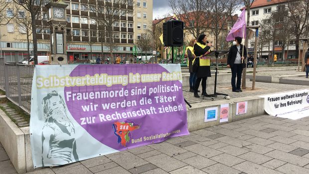 Eylem “Yaşasın kadın dayanışması, Jin Jiyan Azadi, Yaşasın enternasyonal kadın dayanışması sloganlalarıyla sonlandırıldı. Eyleme konuşmalarıyla dayanışmada bulunan DİDF ve Nürnberg 8 Mart Komitesi’nin yani sıra SYKP ve AGİF de destek verdi.