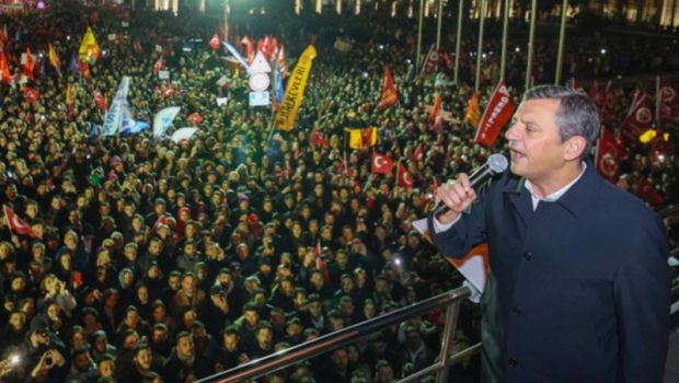 Özel, Erdoğan’a seslendi: “Tayyip Bey, sen gece kendi kendine sayıklama. Bak bu kadar insan buradayız. Gecemiz yok, gündüzümüz yok. Sana özlediğin, unutamadığın o sesi duyuralım. İstanbul ‘u kaybeden [kitle: ‘Türkiye’yi kaybeder’], İstanbul ‘u kazanan, [kitle: ‘Türkiye’yi kazanır’] Işte bu yüzden Tayyip Bey Ekrem Bey’in adaylığından korkuyordu. Biz Cumhuriyet Halk Partisi kimin aday olacağına partinin genel başkanı yönetim kurulu milletvekilleri karar vermek yerine Türkiye’de ilk kez dünyada da çok kullanılmayan bir yönetmle, bütün üyelerimizle belirlemeye karar verdik. Bir milyon beş yüz bin olan üye sayımız hızla bir milyon yedi yüz elli bine tırmandı. 31 Mart’ta bir demokrasi devrimini gerçekleştirmeye hazırlanırken hazımsızlar Ekrem Bey’in büyük bir destek alacağından CHP ‘nin bir milyon yedi yüz elli bin üyesinin kullanacağı ön seçim oylarından korkarak hızla harekete geçtiler.” diyerek son hafta içinde İmamoğlu’na karşı girişilen diploma iptali, gözaltı ve tutuklama sürecini hatırlattı.