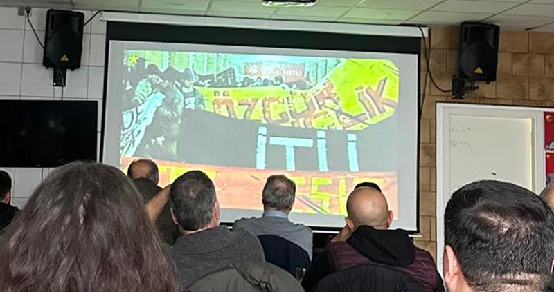 Saygı duruşunun ardından, Türkiye, Kürdistan ve Ortadoğu’da yaşamını yitiren devrimcilerin yaşamlarını ve mücadelelerini konu alan bir sinevizyon gösterimi yapıldı. Gösterim sonrasında Anma Komitesi adına bir konuşma gerçekleştirildi.